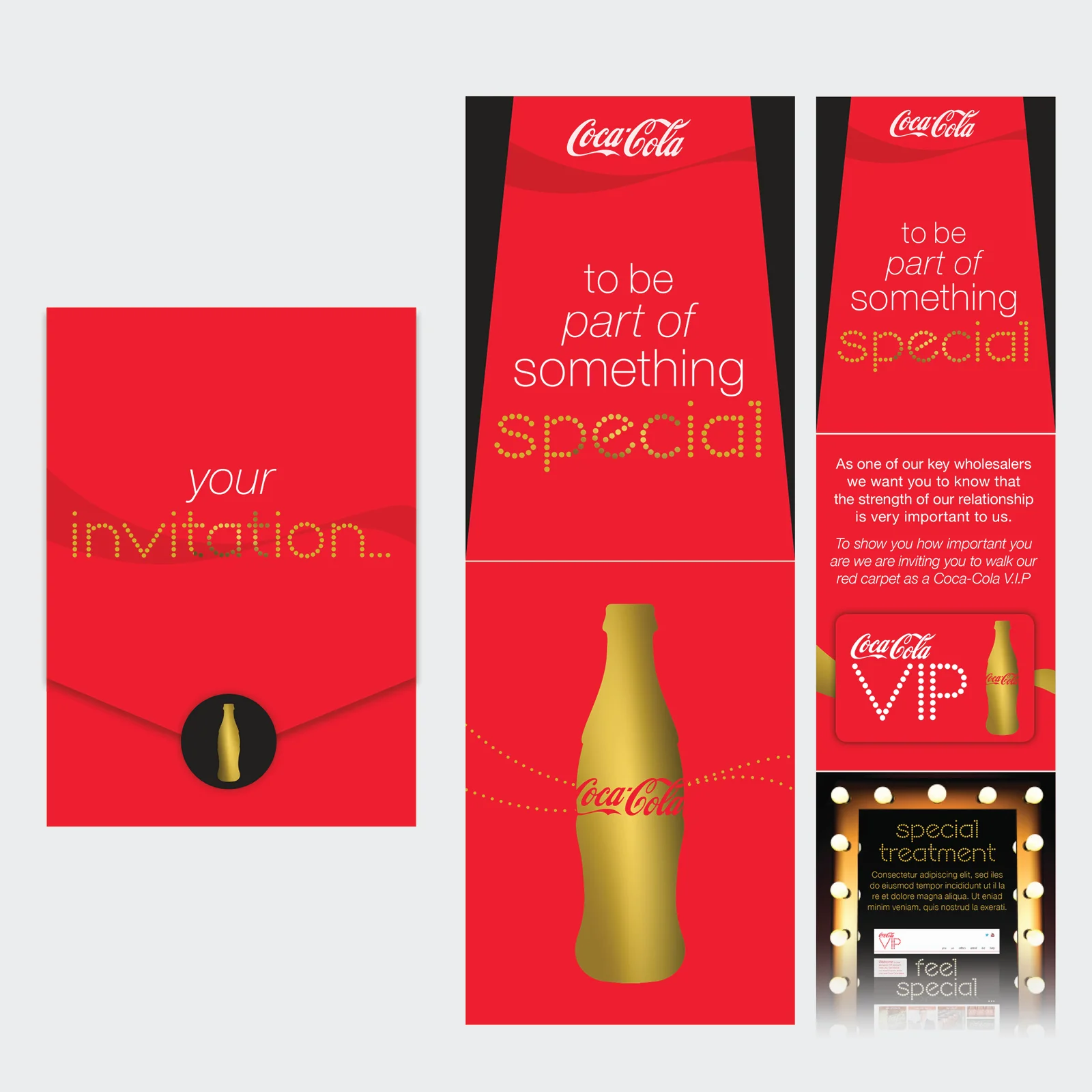 COCA-COLA V.I.P CAMPAIGN Concept and design for a Coca-Cola campaign to engage and incentivise their nationwide network of wholesalers via a V.I.P Trade programme.